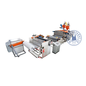 Принцип работы машины для изготовления 2-слойной пузырчатой пленки PT-L2S2-W2600 основан на совместной экструзии двух полимерных потоков с последующим формированием двухслойной пленки, один из слоев которой структурирован в виде равномерно распределенных ячеек. Каждый шнек выполняет функцию транспортировки, расплава и гомогенизации полимерной массы. Материал проходит через систему фильтрации и подается в голову, где формируется плоская пленка. Далее с помощью цилиндрического вала с ячеистой поверхностью на одном из слоев создаются полости, которые герметизируются вторым слоем пленки. Продольные кромки полотна обрезаются для получения ровного края, после чего пленка наматывается в рулон.
