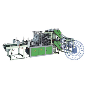 Станок для производства пакетов MD-HC1000B – это высокопроизводительная (четыре уровня, на каждом по две линии) стационарная программируемая электропневматическая машина горизонтального типа непрерывно-поточного действия, предназначенная для выпуска значительных партий цветных или прозрачных полиэтиленовых прямоугольных мешков или мешков типа «майка» на базе предприятий, не обладающих большими цеховыми помещениями.